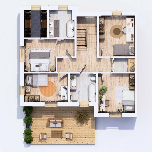 3 dodatkowe pokoje (dla dzieci, gości lub jako gabinet)