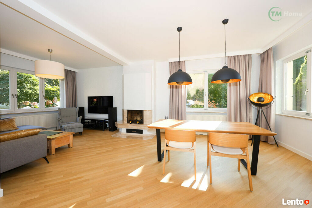 z funkcją jadalną, wykończony stylowym drewnianym parkietem i